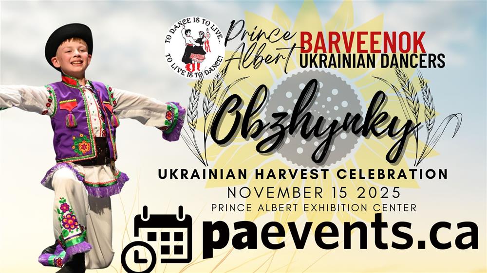 Join us for Obzhynky, a vibrant celebration of Ukrainian culture, heritage, and the harvest season, hosted by the Prince Albert Barveenok Ukrainian Dancers. This annual event brings the community together for a night filled with music, dance, and delicious traditional cuisine, all while supporting local arts.